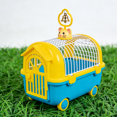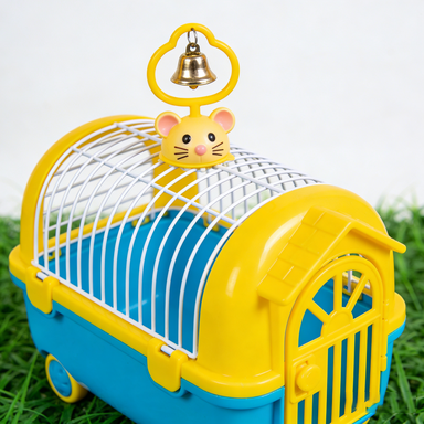 Conforme mostrado na imagem da gaiola azul-amarela para animais de estimação, projetada especificamente para animais de estimação pequenos, com linda decoração de cabeça de rato e sino dourado. Preço de atacado $ 12-15/unidade (com base em MOQ), pedido mínimo de 100 unidades, suporte para personalização de funções e etiquetagem privada.